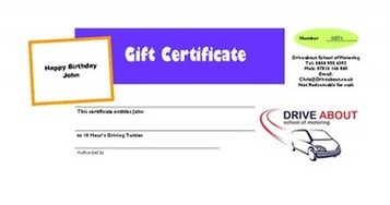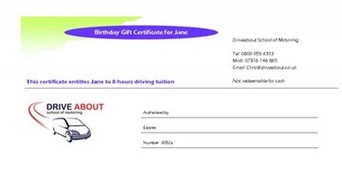 Gift Voucher's available for 2hr, 4hr, 6hr, 10hr, 15hr and 20hr Driving lessons.